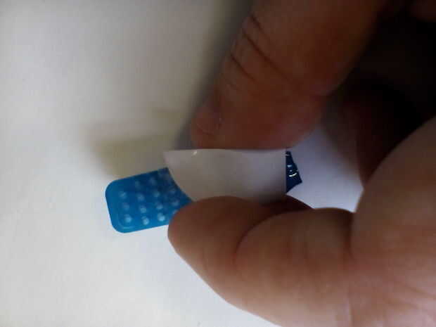 Una vez hecho esto, corte una tira de cinta de doble cara y pegar esto en la parte posterior del cepillo.