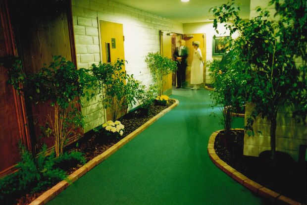 Años más tarde repetí la transformación decorativa para mi propia boda. Junto con las luces utilizan un gran número de plantas: árboles, arbustos y flores. Tuvimos la suerte de que nos encontramos un servicio que nos permitió alquilar toneladas de vegetación (si no hay tal servicio es disponible habla con un vivero local, a ver si lo permite tu 'pedir prestado' o alquilar su inventario por un pequeño suplemento). Para ampliar la ilusión aún más I creado jardineras imitación contra las paredes, bordes de ladrillo real rojo y lleno de flores y la corteza de la secoya. También he añadido bancos de parque y una fuente de agua.