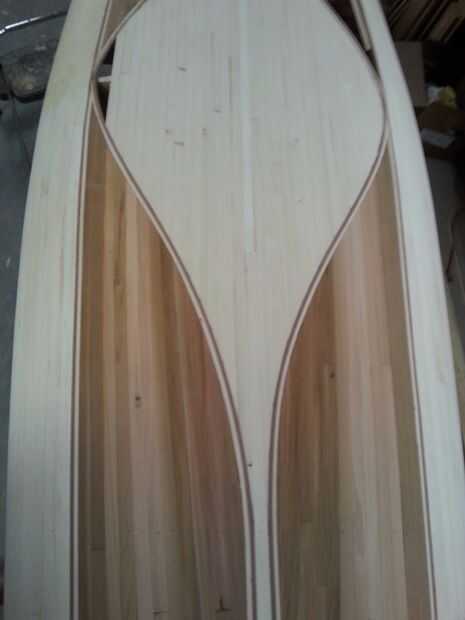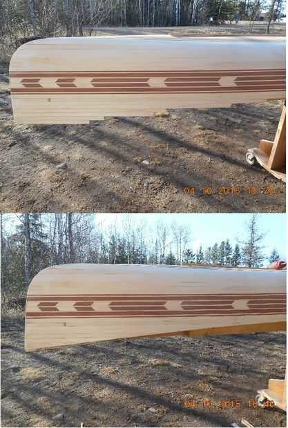 Créalo o no, mi novia entra en la tienda con de unos 3' 2 x 2 que ella se retiró de su gallinero, barandillas que queda de su porche que pusieron hace años. Corté una rebanada de uno de ellos con mi sierra de mesa, que era cedro hermoso, oscuro. Así que ahora tengo un montón de 3' largo piezas para rellenar en la parte inferior. Pero tiene que ser artístico para hacer la transición. Por lo tanto, el diseño en la parte inferior. Estas tiras se quedaron con los bordes cuadrados para la facilidad de hacer todas las formas de ángulo en el extremo de cada tira individual. Usé un 18" lijadora de banda, mano para moldear los extremos. Después de un tiempo el formar era hasta segundos por cada tira. El blanco en la parte inferior de la embarcación es pino. Estaba fuera de aspen, pero pensé que el pino no tope hasta aspen cualquier lugar, por lo que la diferencia de color no será un problema. Creo que pasé una semana en la parte inferior del barco.