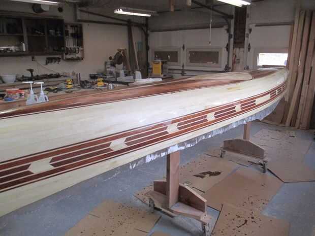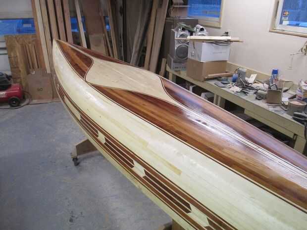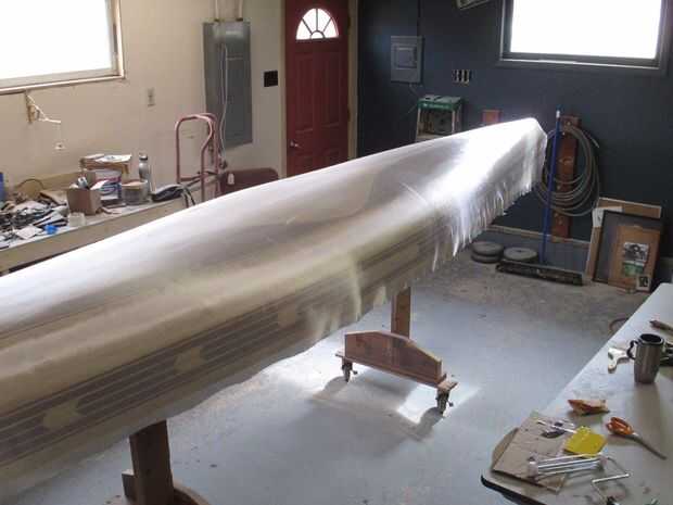 Aplicando el epoxi con el vidrio. I mi epoxy en pequeñas cantidades de la mezcla y vierta sobre el barco en una piscina de unos 2 o 3' de largo y la escobilla de goma la longitud de la canoa lentamente trabajando mi camino por los lados, no mucha presión, tratando de mojarlo. pasar a la siguiente sección de pie de 2-3, dejando el primer remojo epoxy y girar el vidrio claro. Mantener un pincel en una mano solo usando a mojado las áreas problema, no para aplicar o separarse de epoxy. Una vez que un área está mojado hacia fuera, yo la escobilla de goma para quitar el exceso. Me Inicio en la parte superior y tire hacia abajo hacia el suelo dejando que el exceso de funcionamiento del barco. Como el vidrio se ha vuelto claro, epoxy de espesor que es más un problema demasiado fino. Fibra de vidrio puede flotar si no tira el sobrante. Quiero el vidrio claro y pegado a la madera, eso es todo. No va para construir arriba en este paso, usted tiene dos capas más para hacerlo.