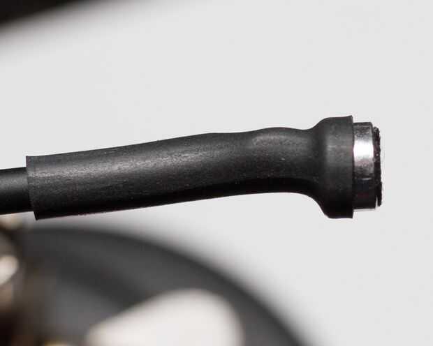 Tercer paso es cubrir la cápsula con un poco de encogimiento de calor. Cortar 3/4" pulgadas o tan pedazo de calor tubería del encogimiento y coloque sobre la cápsula. El objetivo no es cubrir el extremo de la cápsula. También, queremos minimizar la cantidad de calor utilizado para no dañar la cápsula. Utilice una pistola de aire caliente y reducir cuidadosamente el tubo alrededor de la cápsula mientras tratando de no superponer el final.