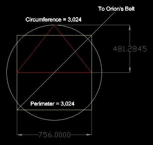 Esto lleva a que la altura de la pirámide será el radio de un círculo cuya circunferencia es igual al perímetro de una base cuadrada. Por lo tanto, a un altura/radio de 481 pies, significa que la circunferencia del círculo es 3.024 pies (481 x 2π = 3.024 pies). Dividir por 4 y es el tamaño de los lados de la base de la pirámide cuadrada (756 pies). Estás realmente orgulloso de su diseño y cómo las matemáticas funcionaba hacia fuera para que mostrar para el Faraón. Que aprueba y usted está apagado a intentar encontrar 100.000 gente desempleada para ayudar a construir en los próximos 20 años.