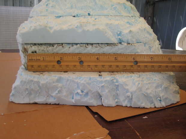 Una vez que has construido una losa azotea satisfactorio construir paredes, una sola pieza de espuma porque la cara cubre los bordes. La altura es de alrededor de 1 y un medio pulgadas en la parte inferior de la azotea o en el "techo" construir un muro de 1/2 pulgada de ancho por la altura es la pared, verifique el ajuste y construir otro.