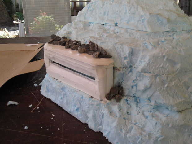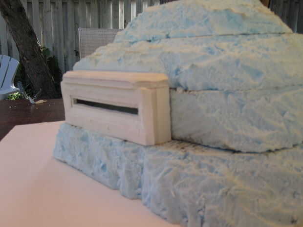Construcción de la cara de bunker, este proceso puede repetirse muchas veces para construir diferentes formas tamaños y tipos de estructuras tablero de la espuma es ideal para edificios de modelo. La pared frontal será como altos como las paredes laterales y la longitud desde el exterior de ambas paredes, la ventana está en el centro y la ventana más pequeña en la parte posterior es la pieza repetida pero 1/4 de pulgada más pequeña, pegar en lugar y deje que se seque. Cuando seco pegamento algunos grava en cubrir las grietas y moverse en el.
