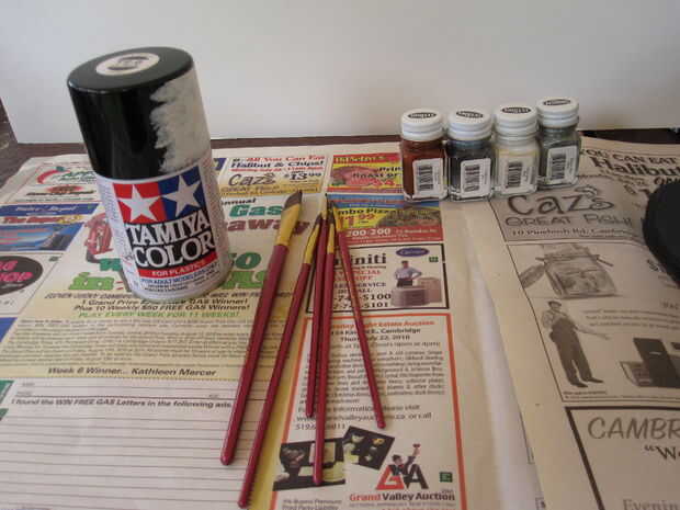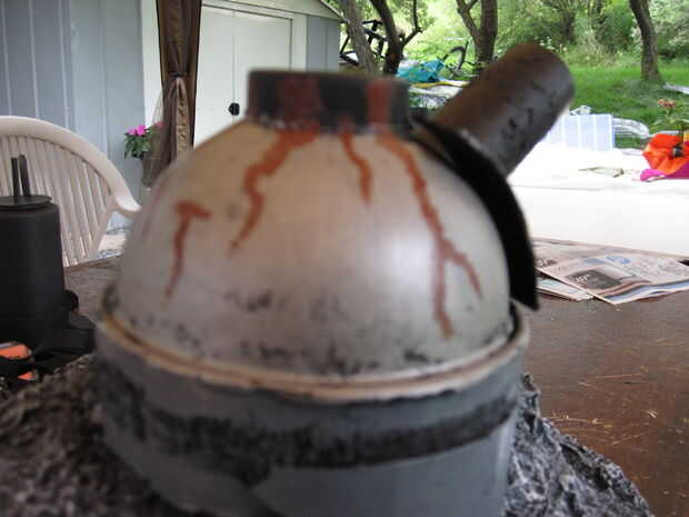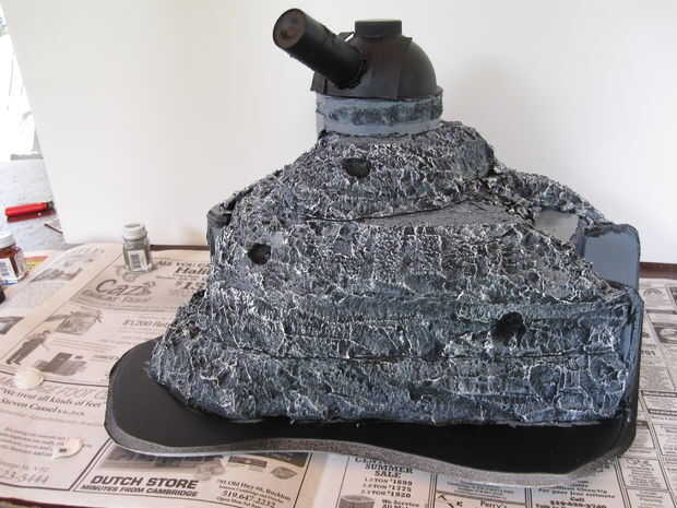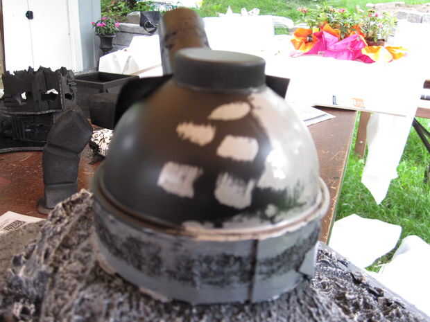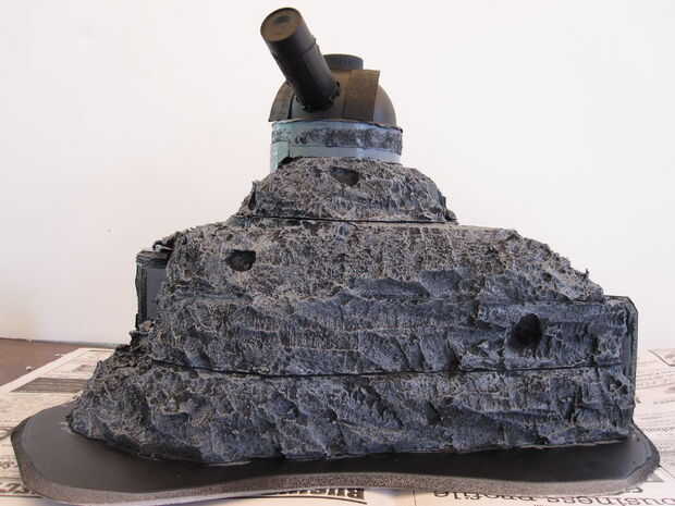 Una vez que toda el agua basado en cartilla de Matt Black tiene pintura seca el gris de la roca entera, pero deja algunas áreas negros mostrando y no pintar los orificios, dejarlos negros. Siguiente pincel seco (esto significa batir más de la pintura el pincel por lo que es "seco") blanco en todos los puntos altos, pero no pintar las piezas de bunker estas permanecerá gris. por último utilizando una pintura de técnica superficies la parte de bóveda de cañón con untar hará que tengan más aspecto de metal. Finalmente de la tapa de la botella de píldora superior agregar algunas vetas de óxido, esto se puede hacer con un pincel de detalle un solo hacer pequeños golpes y agregarlos para hacerlos más y más si es necesario recuerda no tratar de ser perfecto se ve mejor si tratas de menos!!