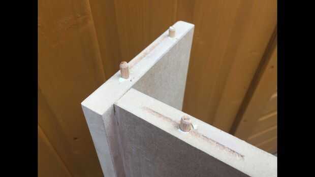 Luego acabo taladrar los agujeros de 6mm en el estante y pega a la base con tacos de madera de 6mm.
