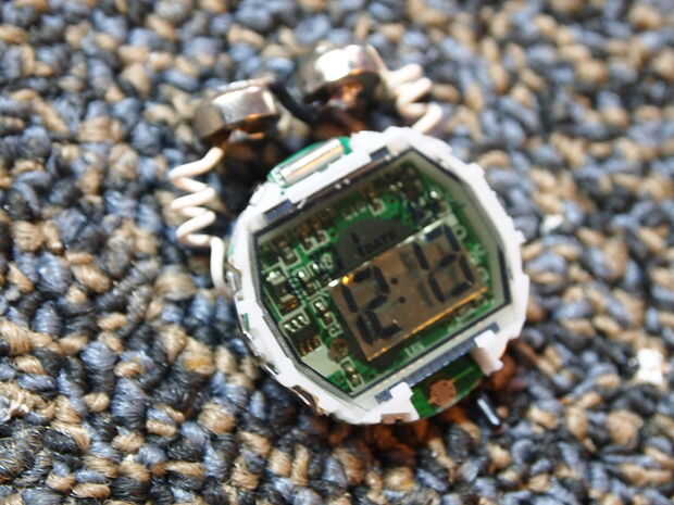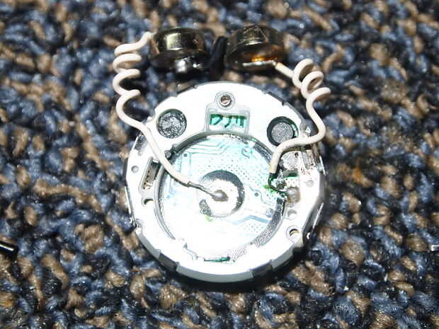 Lo que hice con el mio es que me la pelaron el componente a su mínimo. Que abandonó el compartimiento de las pilas comunes y mi propia "soporte de la batería" para hacer el reloj más crudo! jajaja lo hice por algunos barata batería (dollartree) junto con algún alambre de soldadura. También quité el reflector de fondo (no sé lo que es se llama =) la pantalla digital para darle ese aspecto flotante.