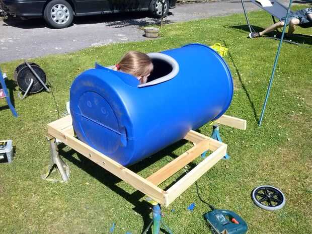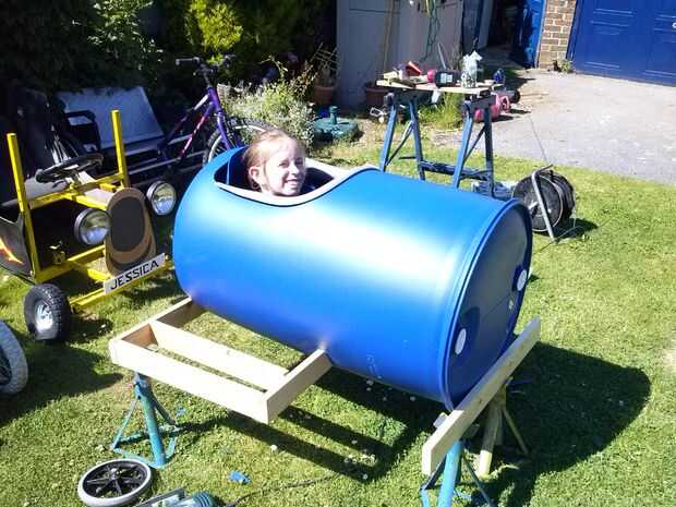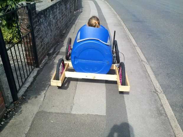 Las dos longitudes 1metre alimentar a lo ancho del tambor, estas fotos fueron tomadas cuando nosotros estábamos experimentando con diseño para la versión final era ligeramente diferente, pero usted tiene que utilizar lo que hoy es la parte trasera del carro para apoyar el eje.