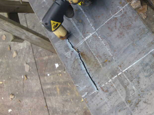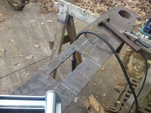 Con su parachoques de la camioneta, corte use una tiza regla y quilla para buscar y marque el centro del parachoques. Si ya has montado el cabrestante en el marco, asegúrese de mantener el puerto alineado con el frente del cabrestante como relacionados con el marco (verticalmente). Una vez marcado, utilice cualquier herramienta de corte su prefieren (Yo utilicé un cortador de plasma) para el agujero, que es apropiado para la configuración del rodillo de la guía. Mi configuración de la guía vino con una hoja que me dice el tamaño mínimo del agujero para el cable, así como el patrón del perno para montajes.