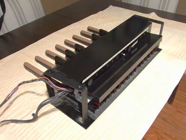 Fui en eBay, y literalmente el conjunto más barato disponible bajo pedales parecía bueno para mi, en parte porque tenía un fuerte marco de metal. Había sido quitado de un órgano casa Conn y fue de $35, $35 adicional necesario para enviarlo. Esto es lo que parecía cuando llegó.