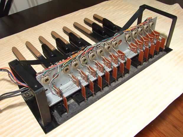 Al quitar la tapa, pude ver el mecanismo. Había un complejo sistema de resortes, corroído de todo mal. En el primer plano, se puede ver que el mecanismo más lejos a la izquierda ha tenido el contacto limpio, mientras que los otros dos no. Puedes ver cómo pesadamente corroído que eran.