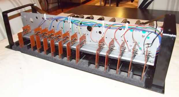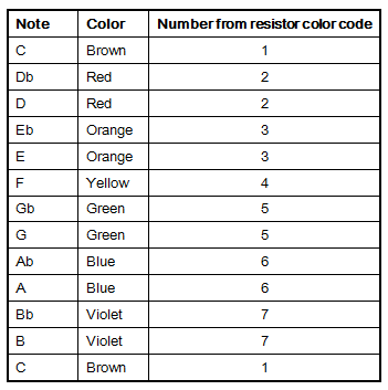 Configurar los conmutadores de pedal de modo que un lado de cada interruptor es conectado a un bus común. Esto conectará a tierra. Al otro lado de cada interruptor debe tener un alambre separado que se va a la tarjeta controladora. Tenía múltiples colores de alambre, así que basado en los colores de cable utiliza en el código de colores de resistencia como se muestra arriba, que me ayudó a hacer un seguimiento de qué nota iba donde.