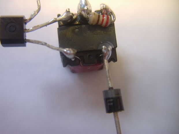 El plomo del cátodo del diodo a la patilla 5 del transformador de la soldadura.