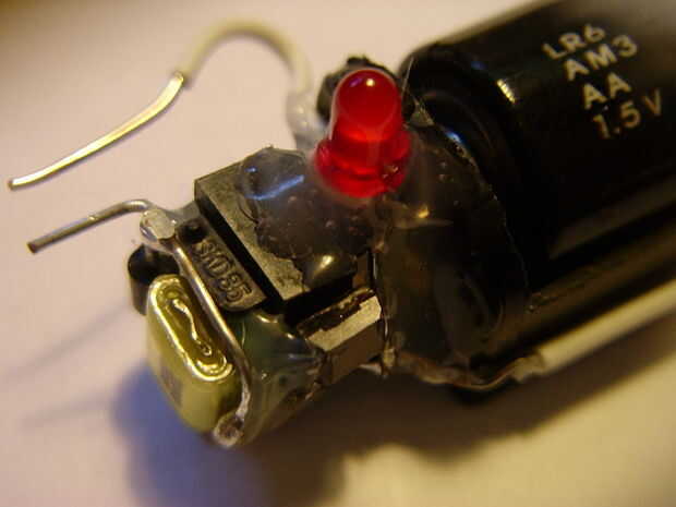 Para utilizar el malhechor, la víctima debe tocar el vivo-450v alambre y el + 1, 5V hilo al recibir una descarga desagradable...