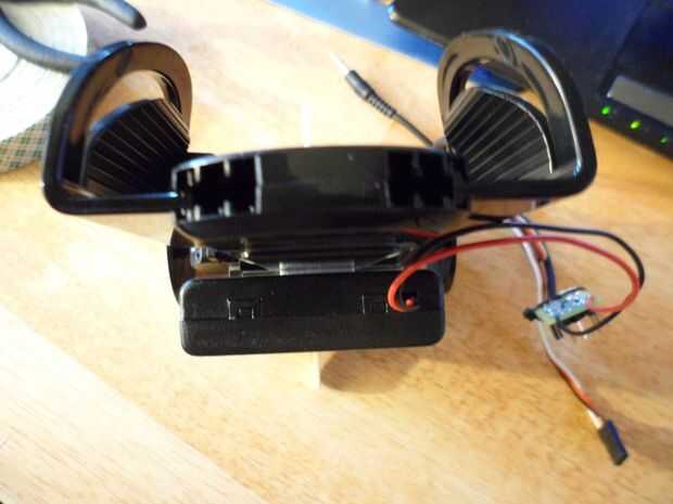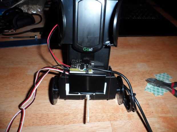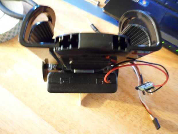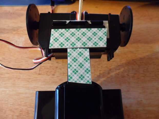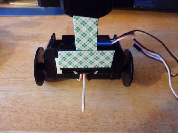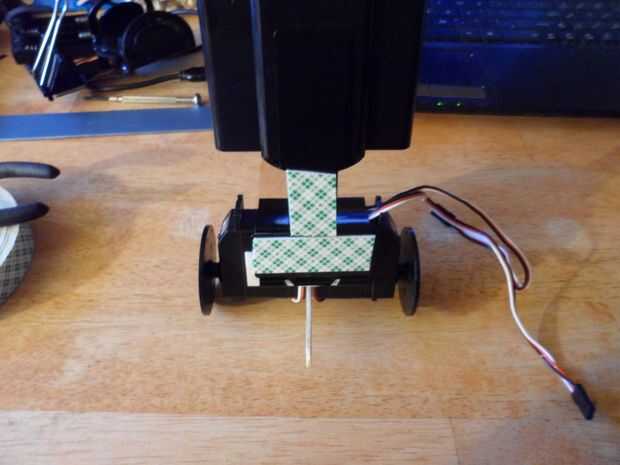 Paso 14) Monte el soporte de la batería 4AA en el soporte de T usando la cinta de doble cara como se muestra.