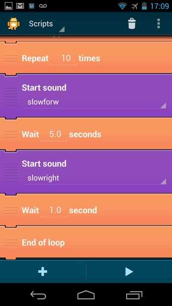 Ver imágenes de abajo para un programa de ejemplo Catroid hacer el robot se mueva en un patrón cuadrado.