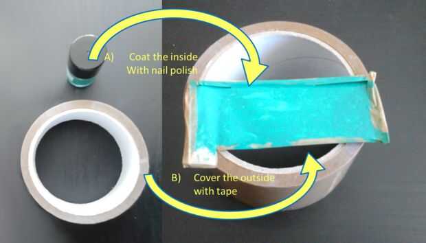 Aplique dos capas de uña vernish sobre el lado interno de la hoja de metal de lata