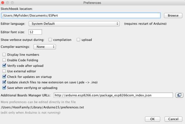 Iniciar el IDE de Arduino y abrir la ventana de preferencias