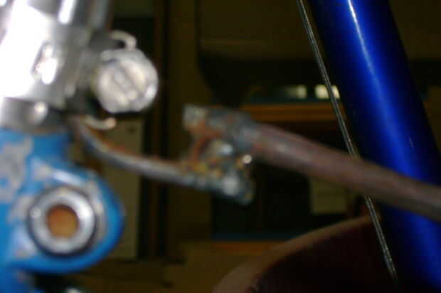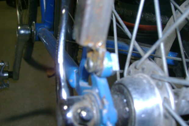 4 en pedazo de la acción plana de la curva en una abrazadera de manguera entonces 45 para el asiento, que alguien sostenga la rejilla cómo quiere que se sientan, y doblar la varilla viene de modo que quede asentada en el 45 en la tija. Ahora soldar la pieza saliendo de la parrilla a los 45 y hacer una buena soldadura carnosa en la barra con los 45 conectado a la rejilla.
