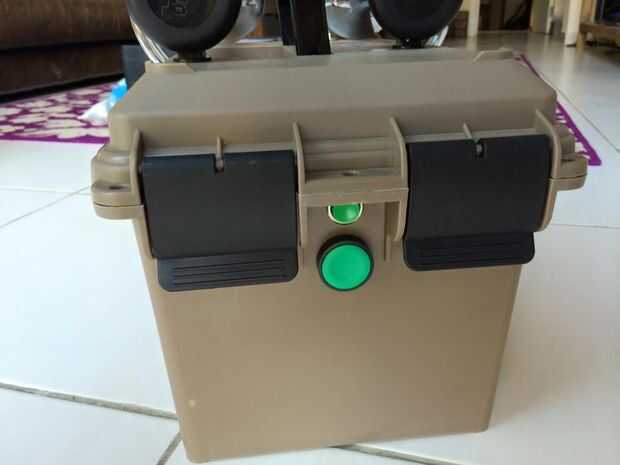El botón amarillo dentro de la caja cambia el tipo de secuencia entre: tres minutos cuenta atrás o cuenta regresiva de cinco minutos.