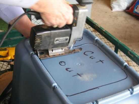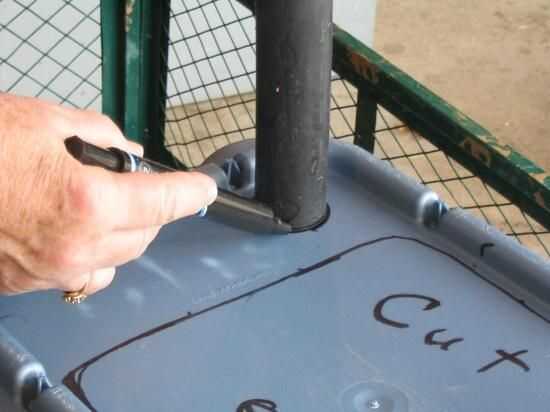 Cortar un agujero en la parte inferior de una de las tinas a la cesta de la charca y el tubo de agua (tubo de pvc)