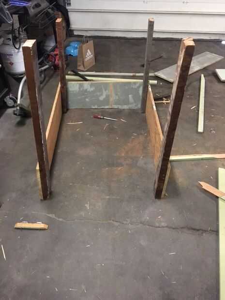 Siguiente clavo en el tablero de 3,25 pies. Por este tiempo debe tener casa 'L' un poco en forma de venir a lo largo. Todo debe ser lo suficientemente robustos como para valerse por sí mismo. Clavo en el tercer pilar en el otro extremo de esta junta. Un tablero de 3,75 pies, siguió clavando su último pilar de cuatro pies de uñas. Ahora el marco debe ser completo. Comprobar que los pilares son la misma altura y no tiene ninguna madera extra colgándose de los tableros laterales.