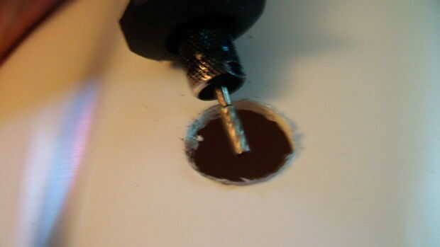 Si tienes una sierra lujo entonces bien hecho. Tuve que conformarme con una broca de fresadora en mi dremel cheapo sustituir (ver foto 3). Este es el lío más que te prometí!