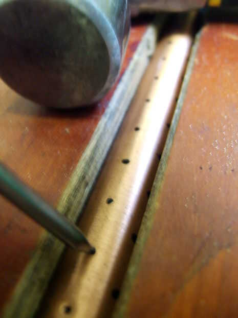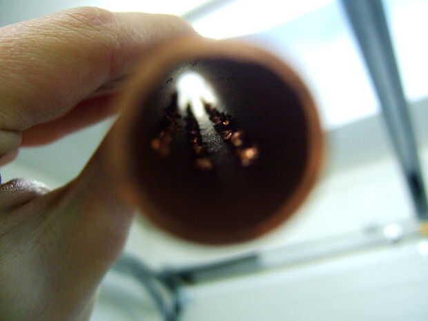 3 - ahora los agujeros son todos hecho tomar la pipa apuntan hacia alguna luz y furtivamente a lo largo. Usted verá un montón de fresas que supongo que usted podría dejar pero sólo usé una lima redonda y les quitó. Sólo le tomó un minuto.