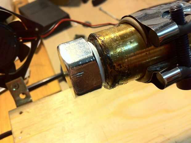Perfore un agujero de 2mm cerca de la parte delantera de la extensión de grifo de agua para el termopar en.