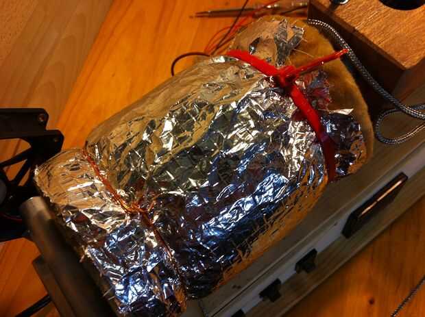 Ahora enrolle el aislamiento alrededor del calentador para que la boquilla está cubierta también.