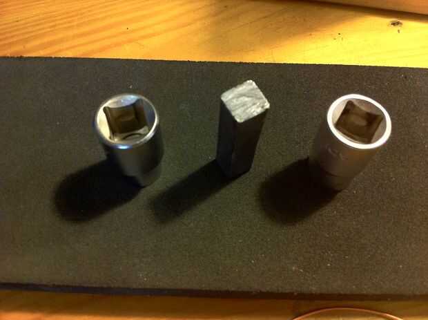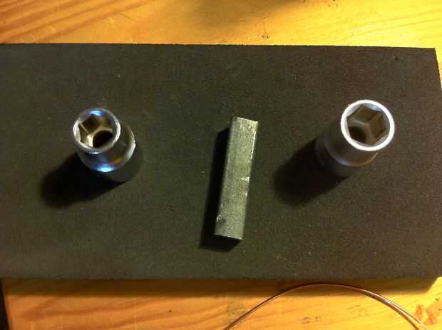 Tomar un trozo de 5cm (2 pulgadas) de un cuadrado de acero que encaja en los extremos de los zócalos (longitud del borde de unos 12mm).