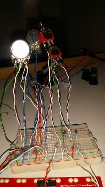 El diagrama adjuntado muestra el nuevo circuito, incluyendo los interruptores y potenciómetros. Tenga en cuenta que los interruptores de funcionan a la salida digital, no el analógico.