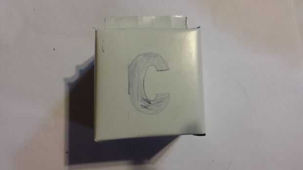 ahora porque me encanta carbono que decidí poner una C grande en el lado y por otra parte corte agujeros para el switch y el potenciómetro.
