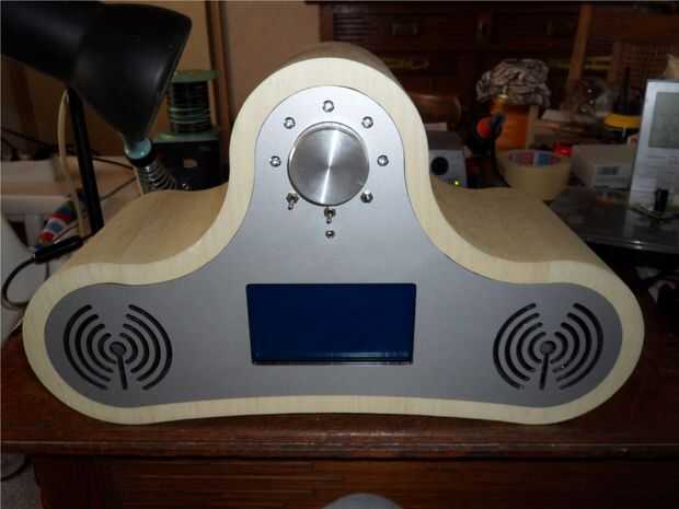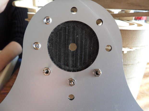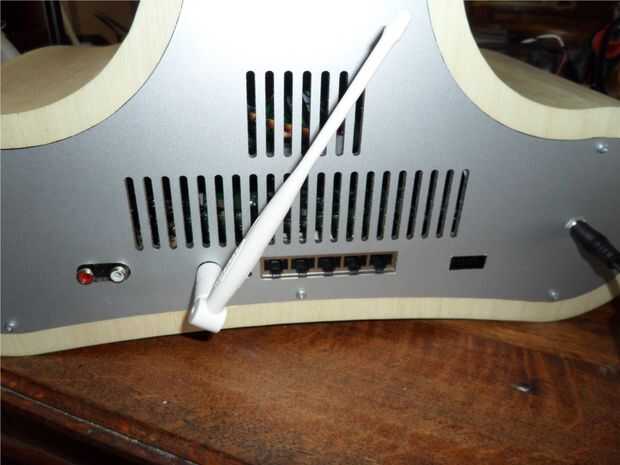 La parte trasera tenía una salida de audio e inserta un conector de programación y pegado a él, un powerconnector fue atornillado a ella y se añadió el router. El panel se enrosca al cuerpo por lo que se puede quitar facilmente.
