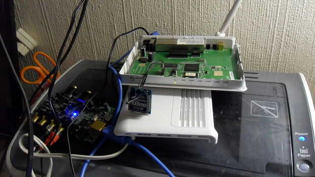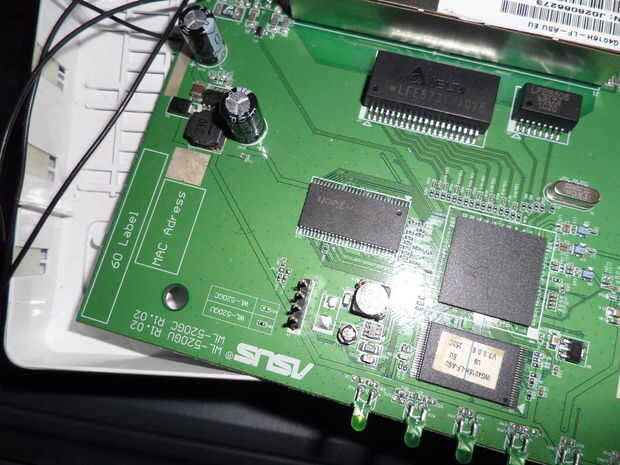 La diversión comienza en el paso 3! Anular la garantía (Yay!!) abriendo el caso del ASUS. Cuando se abre debe localizar dónde puede soldar un encabezado de 4 pines macho. Se encuentra cerca el logo ASUS del silkscreen. Soldar el headerpins fue un poco complicado. Mejor manera de hacerlo es eliminar todo el estaño que se encuentra en los agujeros antes de incluso intentar.