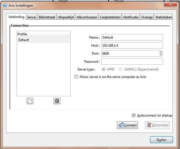 Cuando tenga instalado el programa, necesitará configurar la conexión. Por host agregas la dirección ip de su router y Puerto 6600. Cuando hace clic en el botón conectar y debería poder ahora controlar la radio desde tu pc.
