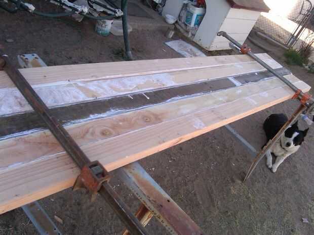 La manera que lo hice, la Junta de centro no tuvo cuña. Las tablas a la derecha e izquierda de la Junta de centro cada utilizan una cuña. El exteriores derecha e izquierdas cada usar tablas dos cuñas. Lo hice a la parte superior y parte inferior de la placa. Lo siento, que no tomo fotos de la parte inferior con las cuñas.