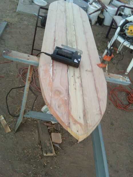 Cortar la otra mitad y trace todo el tablero en la duela.