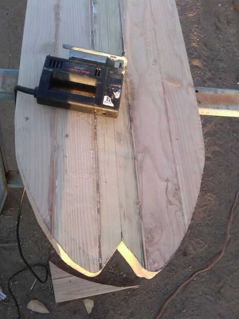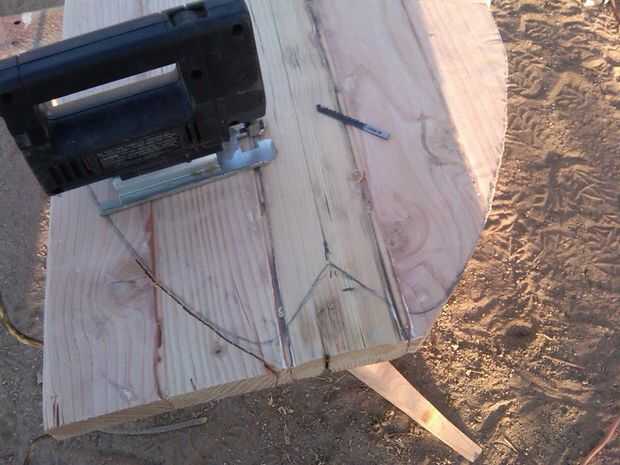 Usando una sierra caladora, cortar cuidadosamente (y lentamente) la forma que acaba de trazar. Si sale áspero, no biggie. El cepillo y lijadora ayudará con eso.