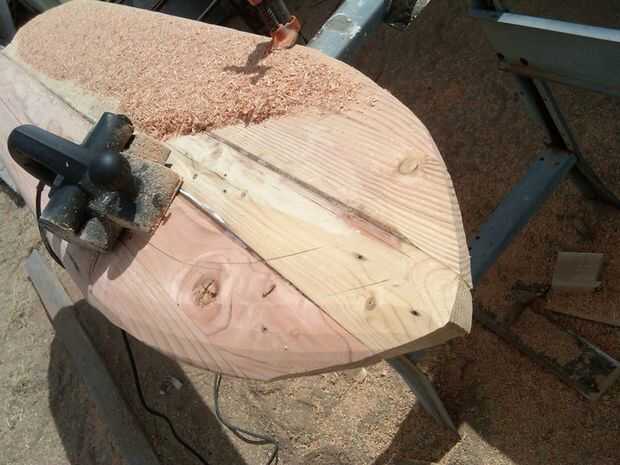 Plano a ambos lados de la Junta, sólo Recuerde concavidad está enfrente de cada lado. Parte superior es cóncava hacia arriba, parte inferior es cóncavo hacia abajo. Como usted está planeando, tenga en cuenta que quieren bordes redondos (rieles). Usted conseguirá un carriles muy delgada si no están prestando atención!