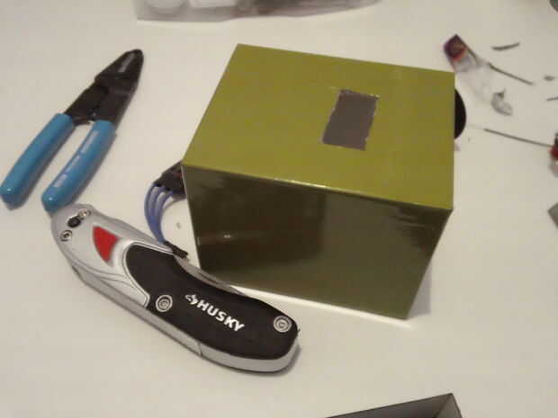 Hacer lo mismo con la otra caja pero en la parte delantera. Pero no corte un agujero en la tapa.
