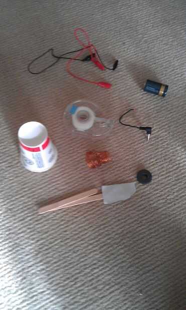 -Alambre de cobre (puede ser logrado por desarmar viejos televisores, estéreos, pero probablemente tendrás algunos ahí). Debe ser cobre, ya que es el material más magnético y conductora que está disponible para ser robaban desde alrededor de la casa.