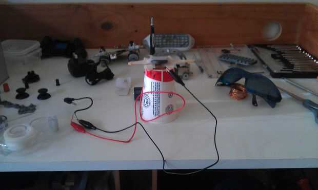 Una vez hecho esto, con cinta adhesiva los palitos a la Copa de una manera que proporciona un marco para el imán.