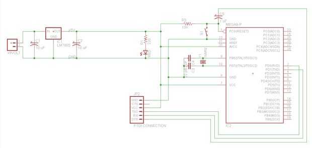 Este esquema contiene todas las piezas mencionadas anteriormente. Algunos de ellos son abreviados o simbolizado de manera diferente, basta con mirar los nombres y valores de ellos para determinar que parte es que. Si usted está usando un protoboard puede utilizar este esquema como referencia para cada conexión de pasador.