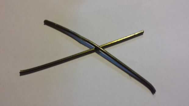 El hangar y corte dos pedazos de igual tamaños que son cerca de seis pulgadas de largo.