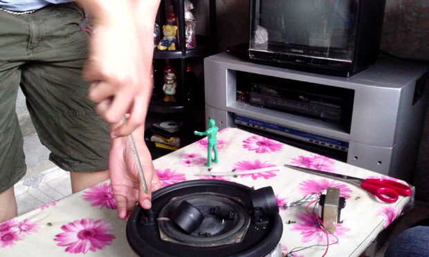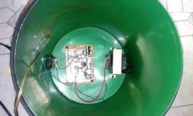 Segundo: Atornillar el circuito de potencia y amplificador en base de la cubeta.