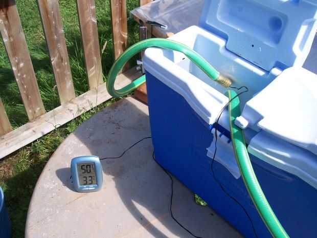 he visto unos diseños diferentes para calentadores solares de agua (en este sitio y otros) y quería compartir mi propia. Es un diseño eficiente ya que cada pulgada cuadrada de superficie del colector está en contacto directo con el agua se calienta. Puede modificar fácilmente el diseño a cualquier tamaño que usted tiene gusto. Hice mía 8 pies de largo por 22" de ancho por lo que puede caber entre los cabios en mi ático. Las pruebas demostraron que salida del sistema un promedio de cerca de 530 vatios, 20 litros de agua de calefacción de 24 grados C (75 grados F) a 47 grados centígrados (117 grados F) en una hora.
