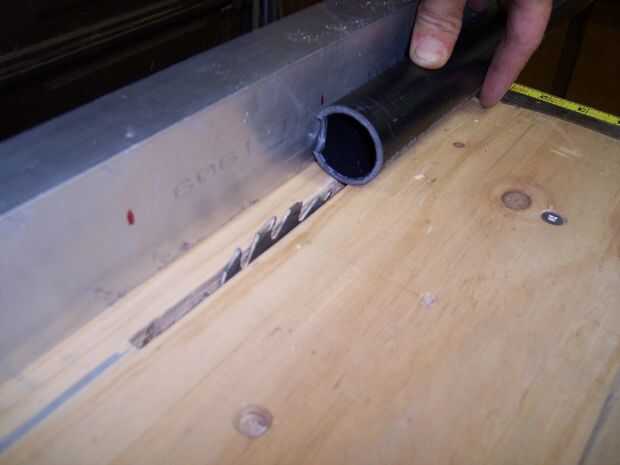 6. usando una sierra de mesa con una valla, extraer cuidadosamente una ranura hacia abajo toda la longitud de cada tubo ABS. La sección transversal resultante debe parecerse a una "C". El tubo ABS tiende a comprimir como cortes, para que cuando haya terminado, la ranura no será tan ancha como la anchura de la hoja de sierra. Tubo de alimentación cada a través de la sierra una segunda vez para limpiar el corte para una anchura constante.