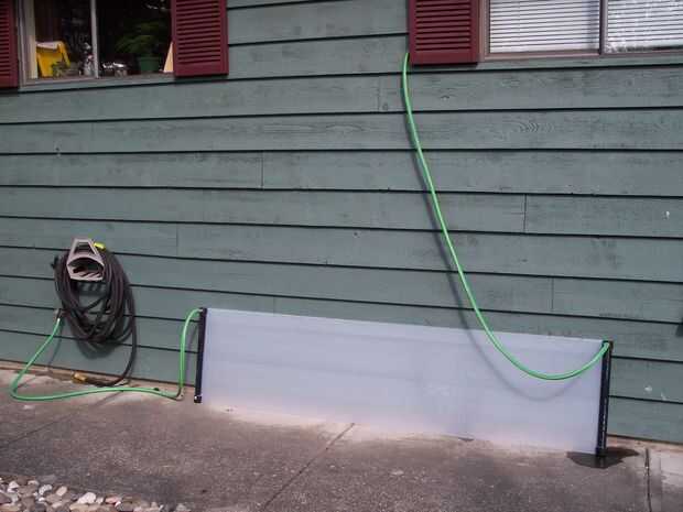 14. Llene el panel con agua (sólo tiene que conectar la manguera de jardín a un grifo en su casa) y revise si hay fugas.