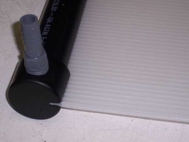 9. Repita el seco en el extremo de la lámina de plástico corrugado. Tallar por el ABS como sea necesario para conseguir un buen ajuste en todas partes.